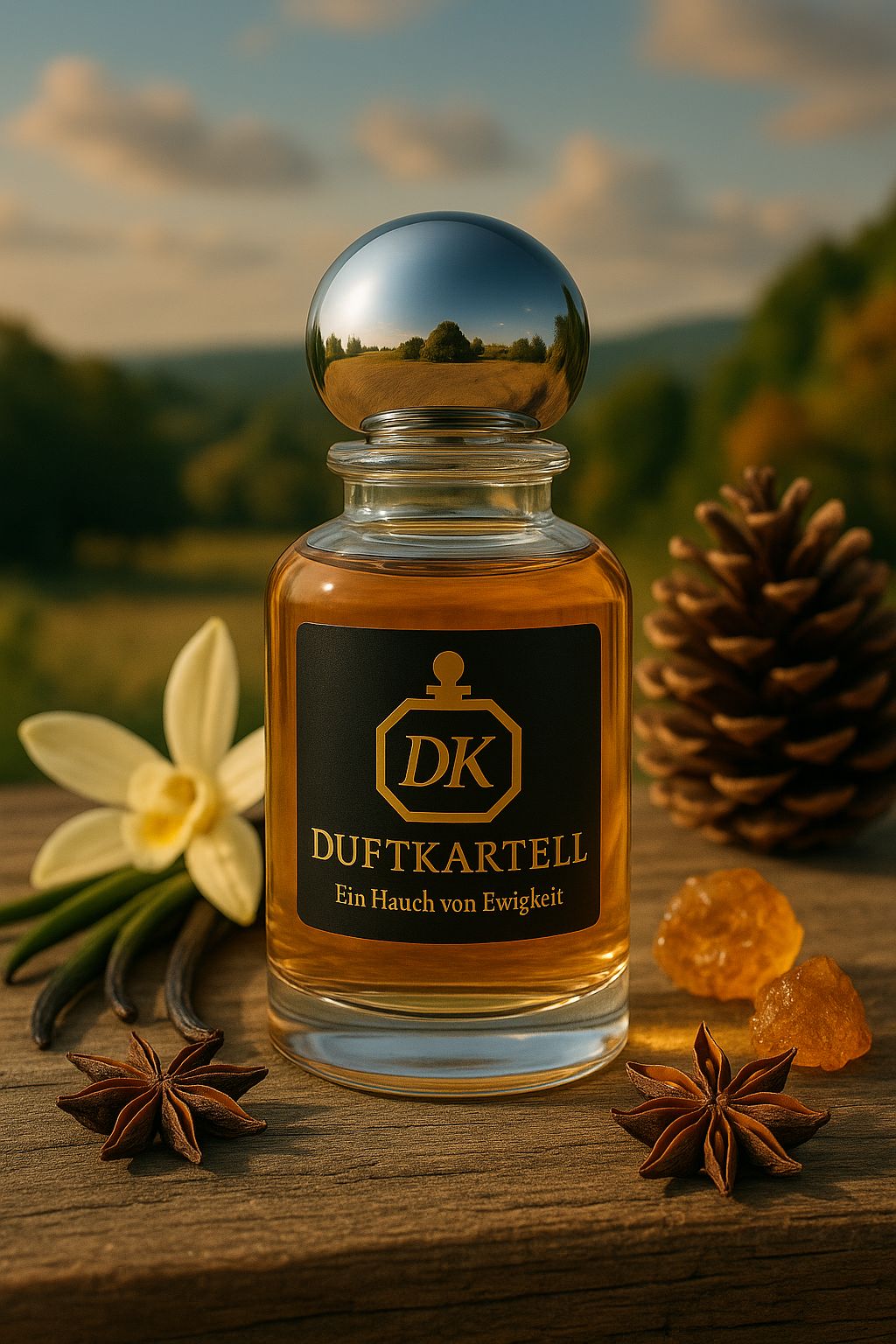Die Komposition eröffnet mit einem leuchtenden Akkord aus Zitrusfrische und würziger Wärme – die spritzige Bergamotte trifft auf sanfte Orangeblüte und würzigen Zimt. Im Herzen entfaltet sich die süchtig machende Tiefe der Bourbon-Vanille, elegant umrahmt von balsamischem Benzoe und dem harzigen Charakter des Elemi. Die Basis verleiht dem Duft eine langanhaltende Signatur: cremiges Guajakholz, sinnlicher Moschus, eine Praliné-Note und das moderne Strahlen von Ambroxan verschmelzen zu einem intensiven, samtigen Ausklang.